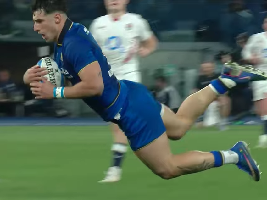 Menoncello vuela a apoyar el primer try de Italia | 6N 2026 | F4 | Italia v Inglaterra | Foto: MRM