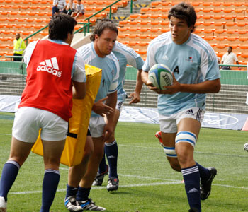 Por la tarde, la práctica se desarrolló en el campo de juego, donde los jugadores que padecen golpes o tienen molestias físicas debido al desgaste, comenzaron con una tocata. Por su parte, el resto del equipo trabajó el ruck, el tackle y la defensa junto con los entrenadores Daniel Hourcade y Raúl Pérez. Para culminar, el conjunto argentino practicó ataque y defensa.