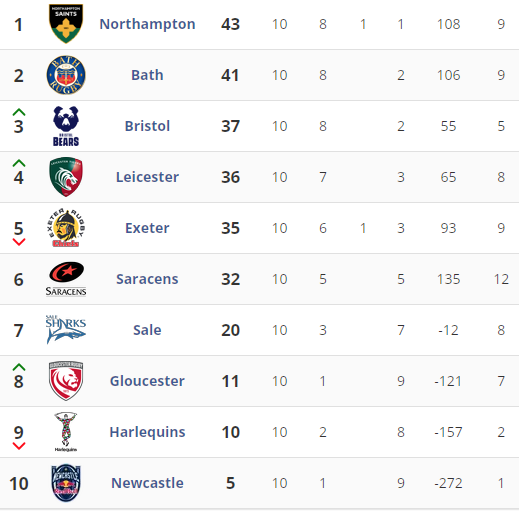 Los Northampton Saints volvieron a liderar la Premier League tras imponerse en un emocionante partido de 11 tries contra los Sale Sharks. Todos los resultados del United Rugby Championship y del Top 14 de Francia que completa este domingo la fecha 15.
